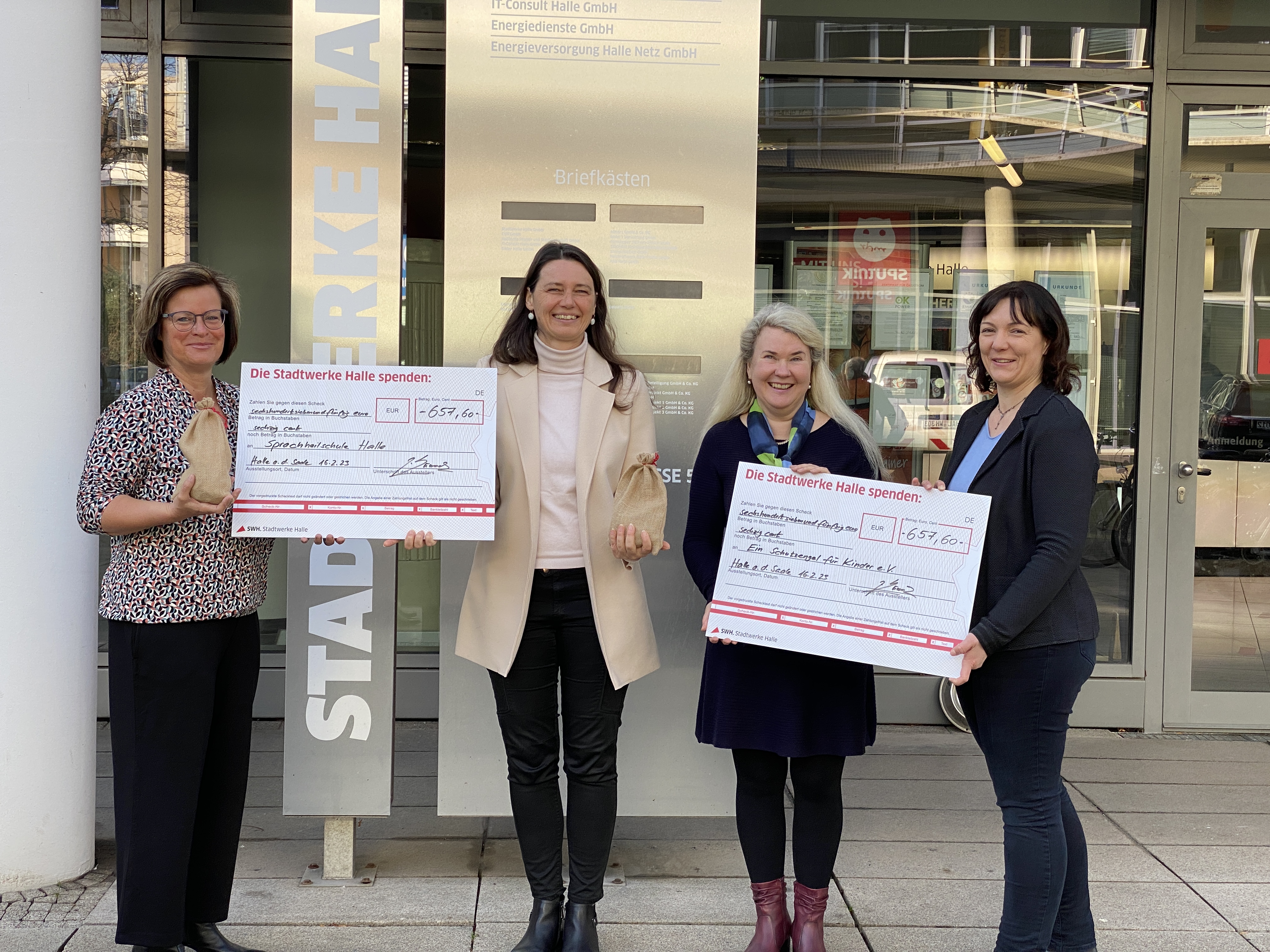 Stadtwerke übergeben rund 1300 Euro an „Ein Schutzengel für Kinder e. V.“ und Sprachheilschule Halle
